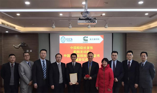 1月10日下午,中國船級社(CCS)向重慶康明斯發(fā)動機有限公司(簡稱“重慶康明斯”)頒發(fā)了國內(nèi)首份船舶發(fā)動機中國第一階段排放認可證書,這標志著國內(nèi)船舶行業(yè)在踐行綠色航運理念方面邁出了新的步伐。