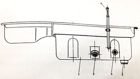 1-油底殼;2-放油塞;3-油溫表接頭;4-機(jī)油標(biāo)尺