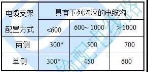 e)水平敷設(shè)時電纜支架的最上層、最下層及兩層之間布置尺寸,應(yīng)不小于下表所列值。