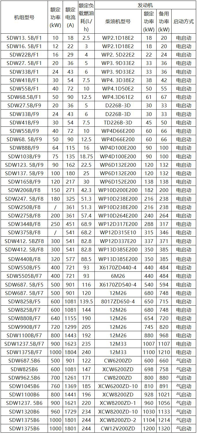 二、濰柴柴油發(fā)電機(jī)組主要規(guī)格型號及技術(shù)參數(shù)