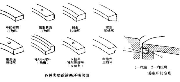 扭曲有助于在運轉(zhuǎn)過程中活塞環(huán)密封缸簡,在壓縮沖程中,活塞環(huán)仍保持扭曲狀態(tài)。這樣使活塞環(huán)滑過仍保留在缸壁上的潤滑油而不是將其帶到燃燒室內(nèi)。隨著活塞的上升,壓縮壓力有助于使活塞環(huán)變平以利于更好的密封,在做功沖程中,燃燒室中的熱氣進入活塞環(huán)槽中。活塞環(huán)被頂出,平靠在缸壁上,這時在做功沖程中具有良好的密封,該過程也稱做動態(tài)密封。在排氣沖程中,靜態(tài)狀況再次出現(xiàn),活塞環(huán)再次扭曲,扭曲使活塞環(huán)又滑過缸壁的潤滑油。多槽和圓形或管形面活塞環(huán)也可產(chǎn)生線接觸,從而達到更好的密封效果。