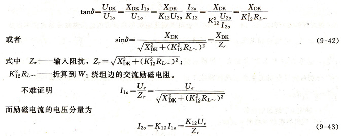 均為已知,現(xiàn)應(yīng)適當(dāng)選取U1o,以確定出W1的匝數(shù)。一般U1o的選擇范圍為U1o=(0.15~0.35)Ue,Ue為發(fā)電機(jī)的額定線電壓。若U1o選得偏低(即K12偏低),則I1o偏大,移相電抗器DK的功率必然較大,增大了電抗器的重量和體積;若U1o選得過高,則雖然減小了電抗器的功率、重量和體積,但移相角較小,移相效果不夠理想。