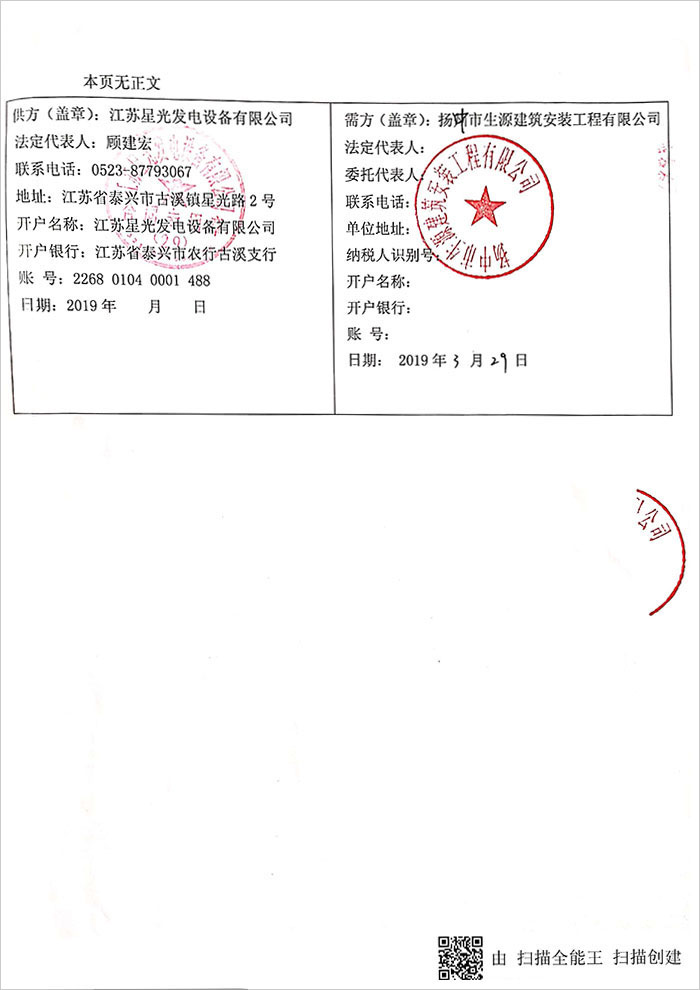 江蘇星光動力集團(tuán) >> 新聞動態(tài) >> 恭喜我公司和揚中市生源建筑安裝公司第二次合作,成功簽訂一臺350KW上柴發(fā)電機
