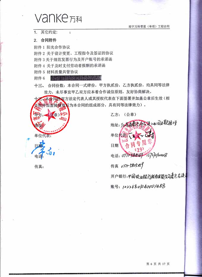 2016年6月22日,我公司與南寧市萬科城房地產(chǎn)有限公司成功簽訂萬科城南區(qū)樣板房臨時發(fā)電機(jī)供貨及安裝工程合同,我公司負(fù)責(zé)為其提供一臺5KW汽油發(fā)電機(jī)和配電箱,并負(fù)責(zé)發(fā)電機(jī)在運(yùn)輸及安裝。合同如下: