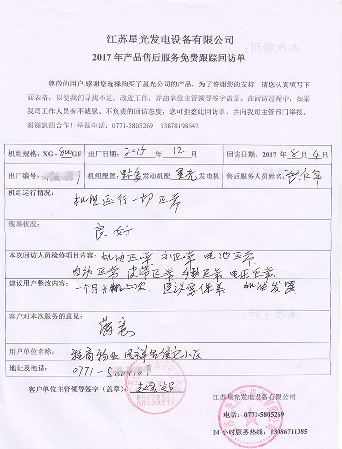我公司自1992年開始,一直為“國家內(nèi)燃機(jī)發(fā)電機(jī)組質(zhì)量監(jiān)督檢查中心”檢驗合格的柴油發(fā)電機(jī)組制造廠商。公司擁有先進(jìn)的檢測設(shè)備、精湛的生產(chǎn)工藝、專業(yè)的制造設(shè)計、完善的質(zhì)量管理體系、 雄厚的研發(fā)實力,服務(wù)網(wǎng)絡(luò)遍布全國各地,隨時為您提供設(shè)計、供應(yīng)、調(diào)試、維修一條龍服務(wù)!