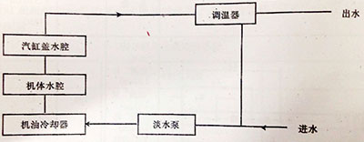 圖1:4.6缸直列型柴油機(jī)開式循環(huán)冷卻液流向