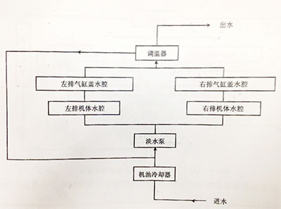圖2:12缸V型柴油機(jī)開式循環(huán)冷卻液流向