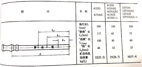 由于油底殼形狀及要求貯存機(jī)油容量的不同,因此各種柴油發(fā)電機(jī)組油底殼所采用的機(jī)油標(biāo)尺也不相同。在柴油發(fā)電機(jī)組基本保持水平狀態(tài)下,標(biāo)尺上的刻線“靜滿(mǎn)”表示柴油發(fā)電機(jī)組起動(dòng)前應(yīng)有的機(jī)油平面;“動(dòng)滿(mǎn)”表示柴油發(fā)電機(jī)組運(yùn)轉(zhuǎn)時(shí)應(yīng)保持的機(jī)油平面;“險(xiǎn)”表示應(yīng)立即添加機(jī)油的最低位置。因此,在柴油發(fā)電機(jī)組工作時(shí),應(yīng)經(jīng)常用機(jī)油標(biāo)尺檢查油底殼內(nèi)的機(jī)油平面位置,以防止油面過(guò)低引起柴油發(fā)電機(jī)組潤(rùn)滑故障;油面過(guò)高易引起漏油?;拘筒裼桶l(fā)電機(jī)組機(jī)油標(biāo)尺與貯存機(jī)油容量的差別見(jiàn)圖2。